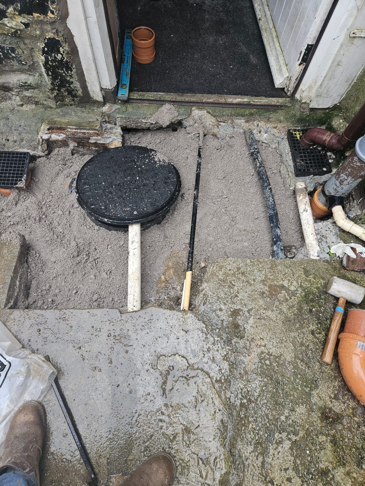 We broke out the deteriorating concrete manhole and replaced it with a modern PVC plastic inspection chamber. These new systems offer smoother surfaces, are far more durable, and are less prone to future blockages—making them a reliable long-term solution.